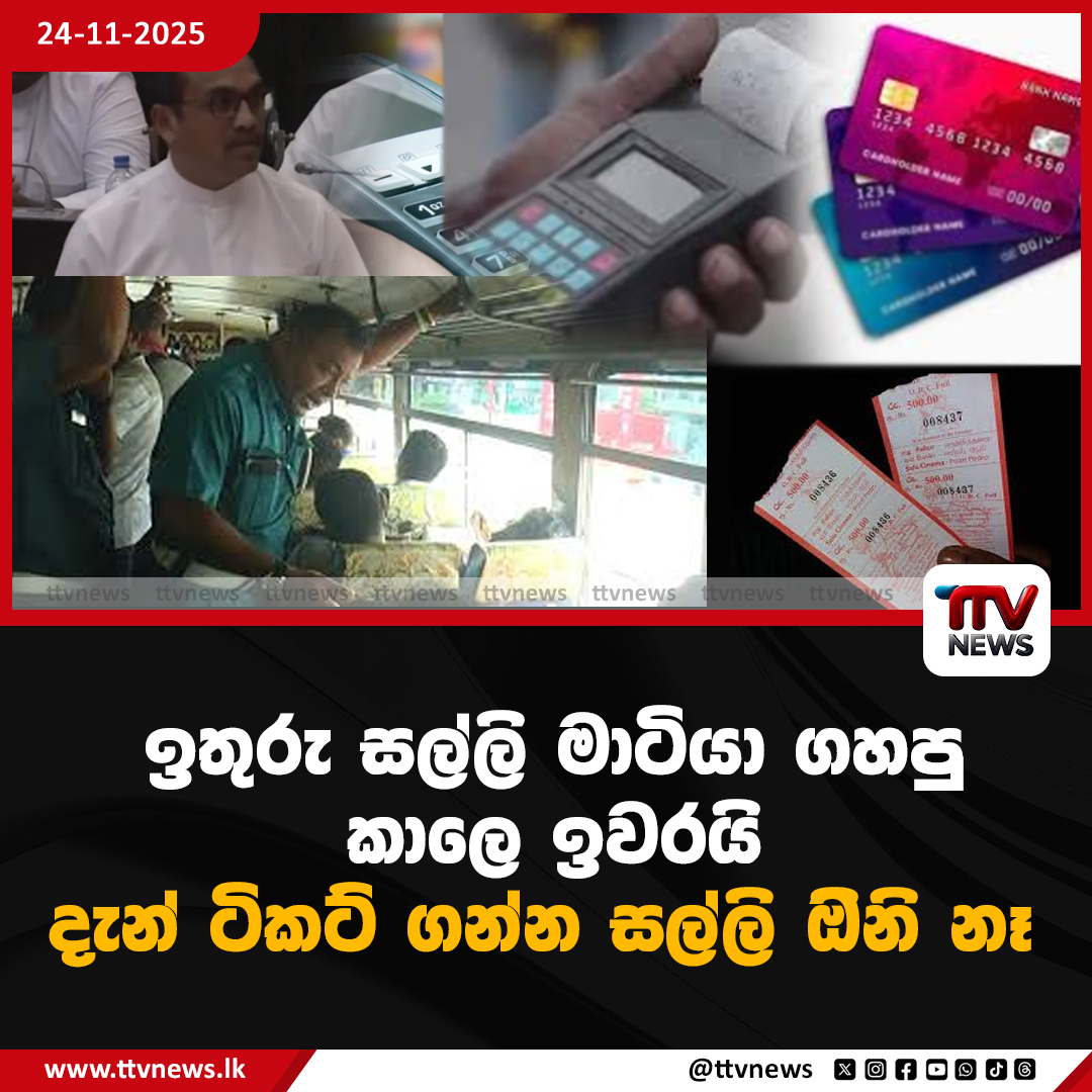 හෙට (25) සිට කොළඹ–වවුනියාව, කඩවත–මහරගම, මාකුඹුර–තංගල්ල සහ මාකුඹුර–අඟුණුකොලපැලැස්ස බස් රථ සේවාව සදහා මෙම ගෙවීම් ක්රමය හඳුන්වාදීමට නියමිතයි.