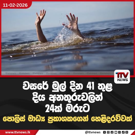 2026 වසරේ ගෙවුණු පළමු දින 41 තුළ පමණක් මෙරට පුද්ගල මරණ 24ක් දිය අනතුරුවලින් වාර්තා වී ඇති බව පොලිස් මාධ්ය ප්රකාශක සහකාර පොලිස් අධිකාරී එෆ්.යූ. වුට්ලර් මහතා පවසයි. අද (11) පැවති මාධ්ය හමුවකදී ඔහු අනාවරණය කළේ, මෙලෙස මරණ වාර්තා වන අතරතුර පොලිස් ජීවිතාරක්ෂක කණ්ඩායම් විසින් දේශීය පුද්ගලයින් 17 දෙනෙකු සහ විදේශිකයින් 16 දෙනෙකු ඇතුළු පුද්ගල ජීවිත 33ක් ජල රකුසාගෙන් බේරාගැනීමට සමත් වී ඇති බවයි. 2024 වසරේදී මරණ 595ක් සහ 2025 වසරේදී මරණ 376ක් ලෙස දිය අනතුරු වාර්තා වී තිබූ බව ද මෙහිදී වැඩිදුරටත් සඳහන් විය.