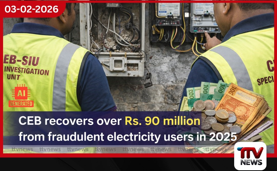 වංචනික ලෙස විදුලිය ලබාගත් පුද්ගලයින් සහ ව්යාපාරික ස්ථානවලට එරෙහිව 2025 වසරේදී ක්රියාත්මක කළ වැටලීම් මගින් රුපියල් මිලියන 90කට අධික මුදලක් අයකර ගැනීමට ලංකා විදුලිබල මණ්ඩලය සමත්ව තිබේ. විදුලි මීටර් වෙනස් කිරීම් සම්බන්ධ සිදුවීම් 1,259ක් සහ නීති විරෝධී විදුලි රැහැන් ඇදීම් (කොකු ගැසීම්) සම්බන්ධ සිදුවීම් 72ක් ඇතුළුව සමස්ත වැටලීම් මගින් රුපියල් 92,770,061.21ක මුදලක් අයකර ගත් බව විදුලිබල මණ්ඩලයේ විශේෂ විමර්ශන ඒකකය සඳහන් කරයි. මෙම මුදලින් රුපියල් මිලියන 90කට අධික ප්රමාණයක් මණ්ඩලයට සිදුවූ අලාභය වෙනුවෙන් වූ වන්දි මුදල් වන අතර ඉතිරිය උසාවි ගාස්තු ලෙස අයකර ගෙන ඇත. විදුලිබල මණ්ඩලයේ විශේෂ විමර්ශන ඒකකයේ කළමනාකරු ඉන්දික ප්රනාන්දු මහතා අවධාරණය කරන්නේ ව්යාපාරිකයන් සහ වෘත්තිකයන් පවා මෙලෙස වංචනික ලෙස විදුලිය ලබාගැනීම සම්බන්ධයෙන් අත්අඩංගුවට ගත් බවත්, මෙවැනි ජාවාරම් පිළිබඳ තොරතුරු 1987 ක්ෂණික ඇමතුම් අංකය ඔස්සේ දැනුම් දෙන ලෙසත්ය.