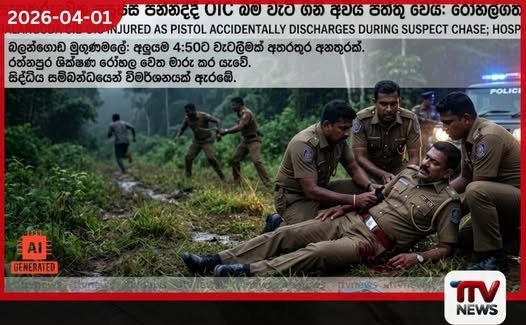 බලන්ගොඩ පොලිසියේ අපරාධ විමර්ශන අංශයේ ස්ථානාධිපතිවරයා (OIC) සැකකරුවෙකු පසුපස ලුහුබඳිමින් සිටියදී බිම ඇද වැටීමෙන් ඔහුගේ ඉණේ තිබූ රාජකාරි පිස්තෝලය පත්තුවී බරපතල තුවාල ලබා තිබෙනවා
