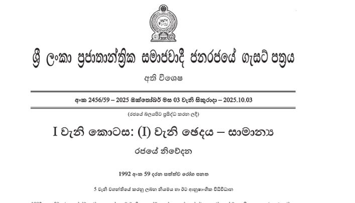 මෙම ගැසට් පත්රය 2025 ඔක්තෝබර් 3 වන දින සිට ක්රියාත්මක වන අතර, එය මාස 3ක් පුරා වලංගු වනු ඇත.
