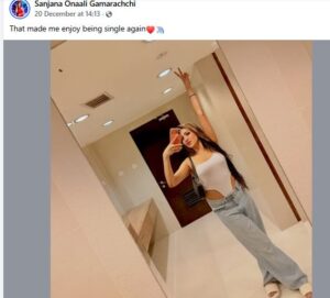 සංජනා ඔනාලි ගමආරච්චි කියන්නේ පුංචි තිරය හරහා ප්රේක්ෂක ආදරය නොඅඩුව දිනාගත්ත සුරූපී රංගන ශිල්පිනියක්. ඇය ගැන මේ දිනවල සමාජ මාධ්ය තුළ දැඩි කතාබහක් නිර්මාණය වෙලා තිබෙන්නේ ඇය විසින් මුහුණුපොතට එක් කළ වෙනස් ආකාරයේ සටහන් කිහිපයක් නිසයි.