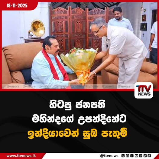 හිටපු ජනපති මහින්ද රාජපක්ෂ මහතාගේ ඡන්ම දිනය වෙනුවෙන් ඉන්දීය මහ කොමසාරිස් සන්තෝෂ් ජා මහතා සිය සුබපැතුම් පිරිනමා තිබෙනවා.