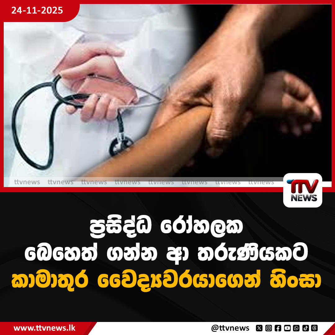 කහතුඩුව–වෑතර දිසා රෝහලේ 26 හැවිරිදි කාන්තාවකට ලිංගික අතවර කළේ යැයි සැකපිට 40 හැවිරිදි වෛද්යවරයෙකු කහතුඩුව පොලිසිය විසින් අත්අඩංගුවට ගෙන තිබෙනවා.