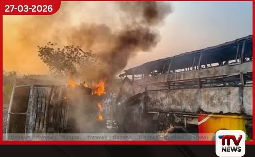 ඉන්දියාවේ ආන්ධ්‍රා ප්‍රදේශ්හි  බස් රථයක් සහ ටිපර් රථයක් ගැටී  දරුණු ගින්නක්