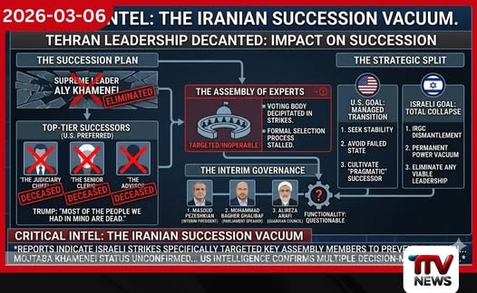 ඉරාන උත්තරීතර නායක අයතුල්ලා අලි කමේනි ඝාතනය වීමත් සමඟ ටෙහෙරාන් පාලනය තුළ පෙර නොවූ විරූ නායකත්ව අර්බුදයක් නිර්මාණය වී ඇති බව නවතම බුද්ධි තොරතුරු වාර්තා කරයි. පාලන තන්ත්රයේ අනුප්රාප්තික සැලසුම්වලට දැඩි බලපෑම් එල්ල කරමින්, ඇමරිකානු රජයේ කැමැත්ත හිමිව තිබූ අධිකරණ ප්රධානියා, ජ්යෙෂ්ඨ පූජකවරයා සහ ප්රධාන උපදේශකවරයා යන තිදෙනාම මේ වන විට මියගොස් ඇති බව තහවුරු වී තිබේ. මෙම තත්ත්වය පිළිබඳව අදහස් දක්වමින් ජනාධිපති ට්රම්ප් ප්රකාශ කර ඇත්තේ තමන් අනුප්රාප්තිකයන් ලෙස මනසේ තබාගෙන සිටි බොහෝ පුද්ගලයන් මේ වන විට ජීවතුන් අතර නොමැති බවයි.