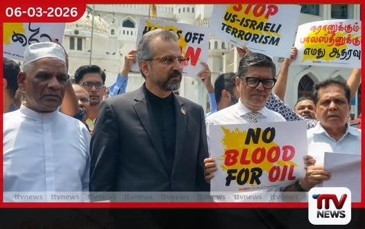 ඉරානයට එරෙහිව ඇමෙරිකාව සහ ඊශ්‍රායලය දියත් කර ඇති යුදමය ක්‍රියාමාර්ග වහාම නතර කරන ලෙස බලකරමින් කොළඹ දවටගහ පල්ලිය අසලදී අද (06) දැවැන්ත විරෝධතාවක් පැවැත්වුණා. මුස්ලිම් ප්‍රජාව විසින් සංවිධානය කරන ලද මෙම විරෝධතාවයට ශ්‍රී ලංකාවේ ඉරාන තානාපති ආචාර්ය අලිරේසා ඩෙල්කෝශ් (Alireza Delkhosh) මහතා ද සෘජුවම එක්වීම විශේෂත්වයක්.