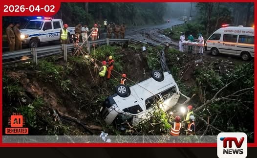 කොත්මලේ ගැරඩි ඇල්ල  ප්‍රදේශයේදී වෑන් රථයක්  අඩි 70ක ප්‍රපාතයට පෙරළෙයි