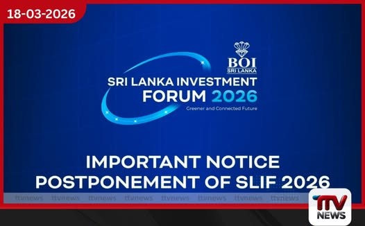 පවතින ගෝලීය දේශපාලනික සහ ආර්ථික වර්ධනයන් සැලකිල්ලට ගනිමින්, මාර්තු 30 වනදා කොළඹ සිනමන් ලයිෆ් (Cinnamon Life) පරිශ්රයේ පැවැත්වීමට නියමිතව තිබූ ‘ශ්රී ලංකා ආයෝජන සමුළුව 2026′ (Sri Lanka Investment Forum 2026) දින නියමයකින් තොරව කල් දැමීමට සංවිධායකයින් තීරණය කර තිබේ. ශ්රී ලංකා ආයෝජන මණ්ඩලය (BOI) විසින් සංවිධානය කරන ලද මෙම සමුළුව සඳහා ලොව පුරා විසිරී සිටින ආයෝජකයින්, ප්රතිපත්ති සම්පාදකයින් සහ කර්මාන්ත ක්ෂේත්රයේ ප්රධානීන් රැසක් සහභාගී වීමට නියමිතව තිබුණි.