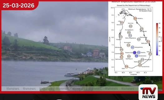 ශ්රී ලංකාවේ ප්රදේශ කිහිපයක අවම උෂ්ණත්වයේ කැපී පෙනෙන වෙනසක් අද (මාර්තු 25) වාර්තා වූ අතර, නුවරඑළිය දිස්ත්රික්කයෙන් වසරේ වාර්තා වූ අවම උෂ්ණත්ව අගයක් ලෙස සෙල්සියස් අංශක 7.8ක අගයක් වාර්තා වූ බව කාලගුණ විද්යා දෙපාර්තමේන්තුව පවසයි. මධ්යම කඳුකරයේ බොහෝ ප්රදේශවල මෙලෙස දැඩි සිසිල් කාලගුණයක් පවතින අතර බණ්ඩාරවෙල සෙල්සියස් අංශක 14.0ක්, බදුල්ල සෙල්සියස් අංශක 17.5ක් සහ කටුගස්තොට ප්රදේශයෙන් සෙල්සියස් අංශක 19.7ක අවම උෂ්ණත්ව අගයන් වාර්තා වී තිබේ.