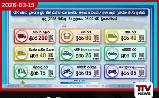 මැදපෙරදිග කලාපයේ පවතින උග්ර යුදමය වාතාවරණය හේතුවෙන් ලෝක වෙළඳපොලේ ඉන්ධන මිල සීඝ්රයෙන් ඉහළ යාම සහ සැපයුම් දාමයන් අඩපණ වීම සලකා බලමින්, අද (2026 මාර්තු 15) උදෑසන 06.00 සිට ක්රියාත්මක වන පරිදි යළිත් QR කේත ක්රමය යටතේ සීමිත ඉන්ධන ප්රමාණයක් නිකුත් කිරීමට රජය පියවර ගෙන තිබේ. හිරු නිව්ස් (Hiru News) වාර්තා කරන පරිදි, එක් එක් වාහන කාණ්ඩ සඳහා සතියකට ලබා දෙන උපරිම ඉන්ධන ලීටර් ප්රමාණයන් පහත පරිදි වේ: